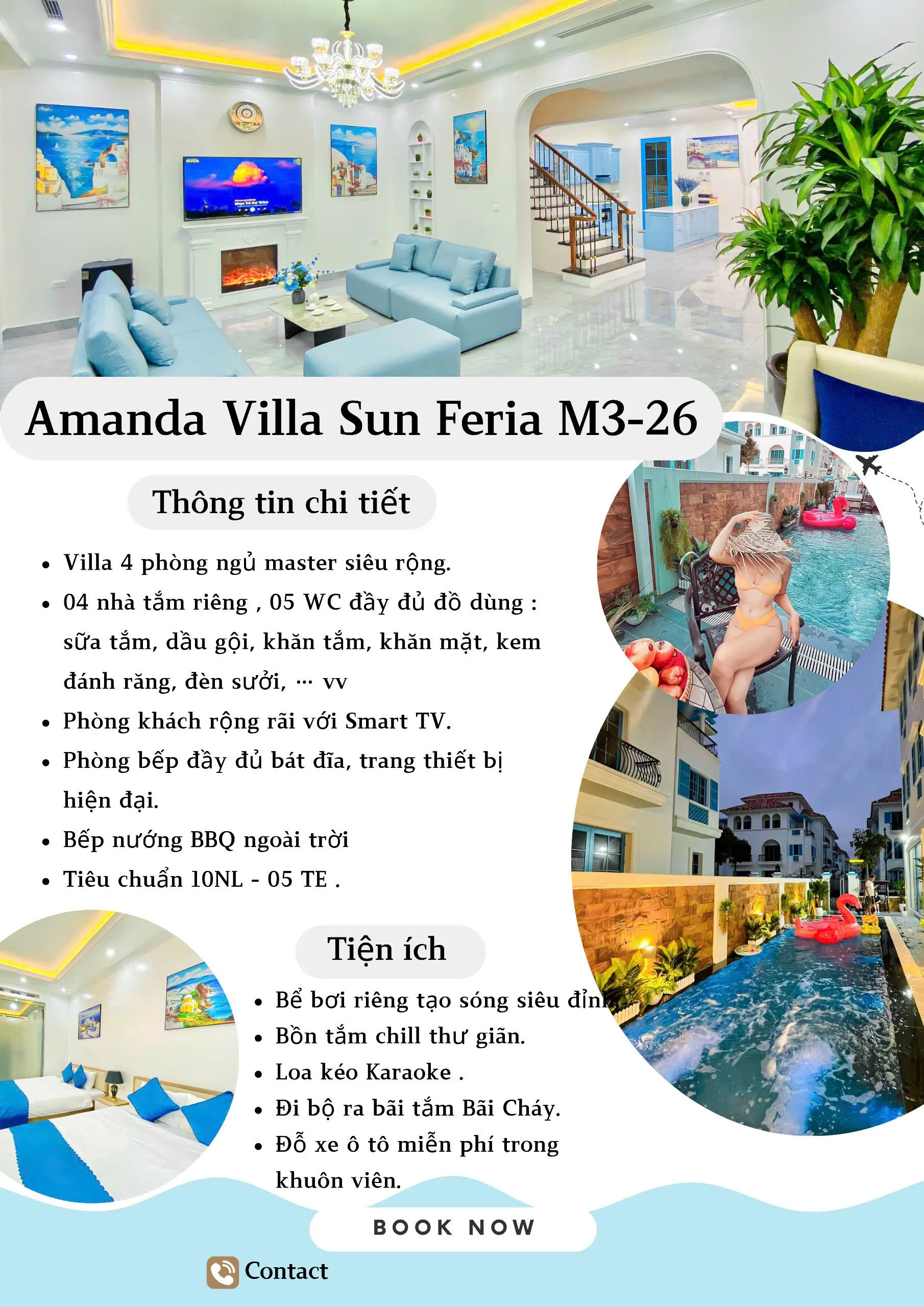 🏝 Villa có 4 phòng ngủ master diện tích 40-60m² ( 6 giường Kingsize 2m2 )
