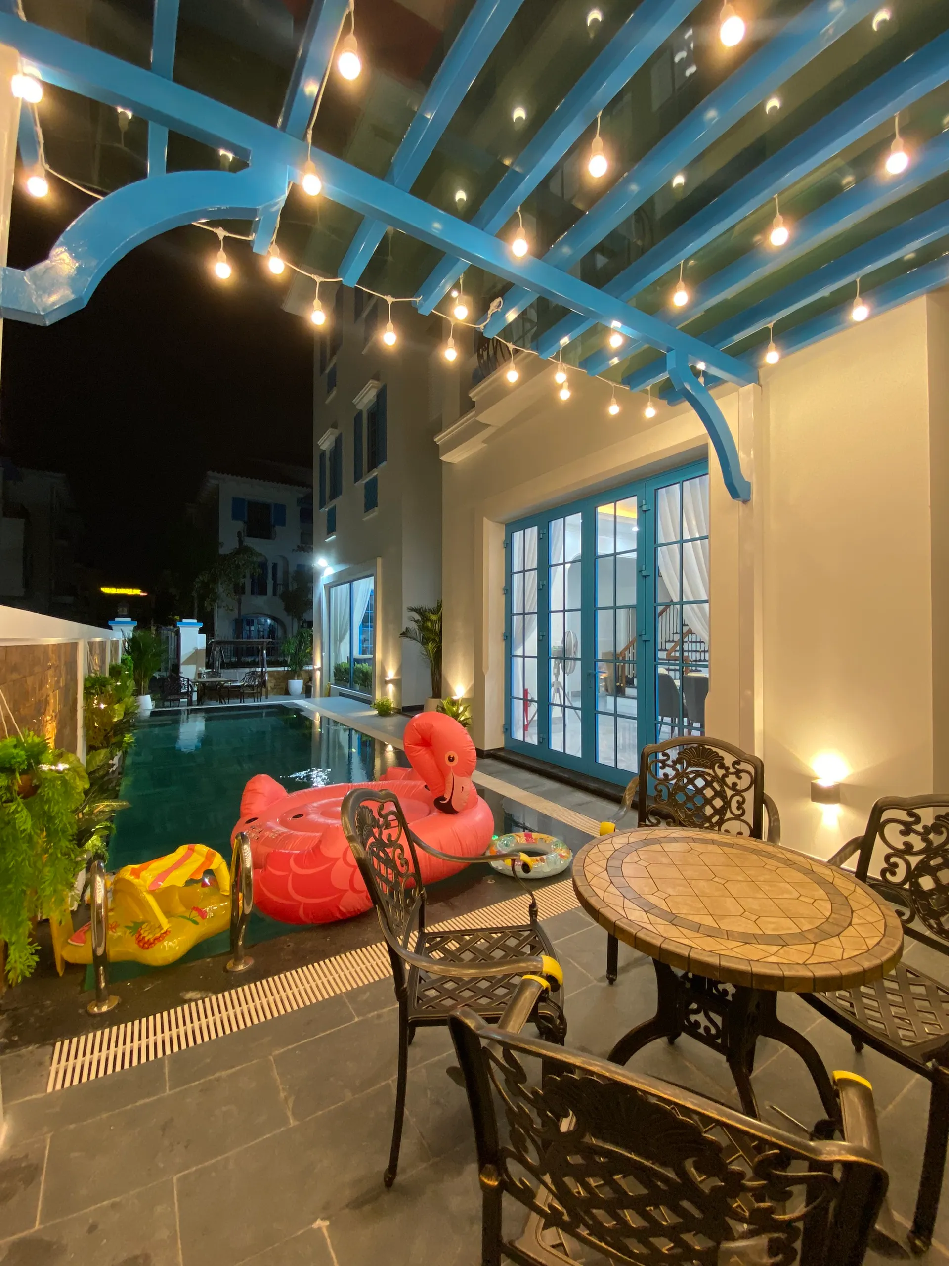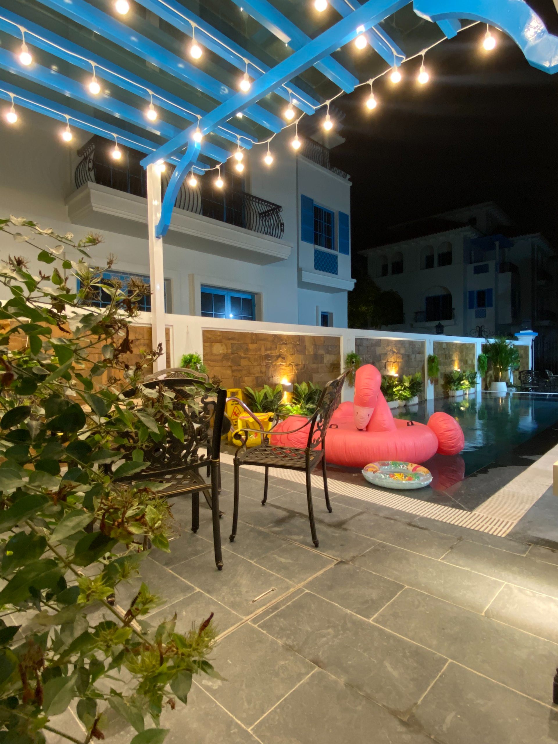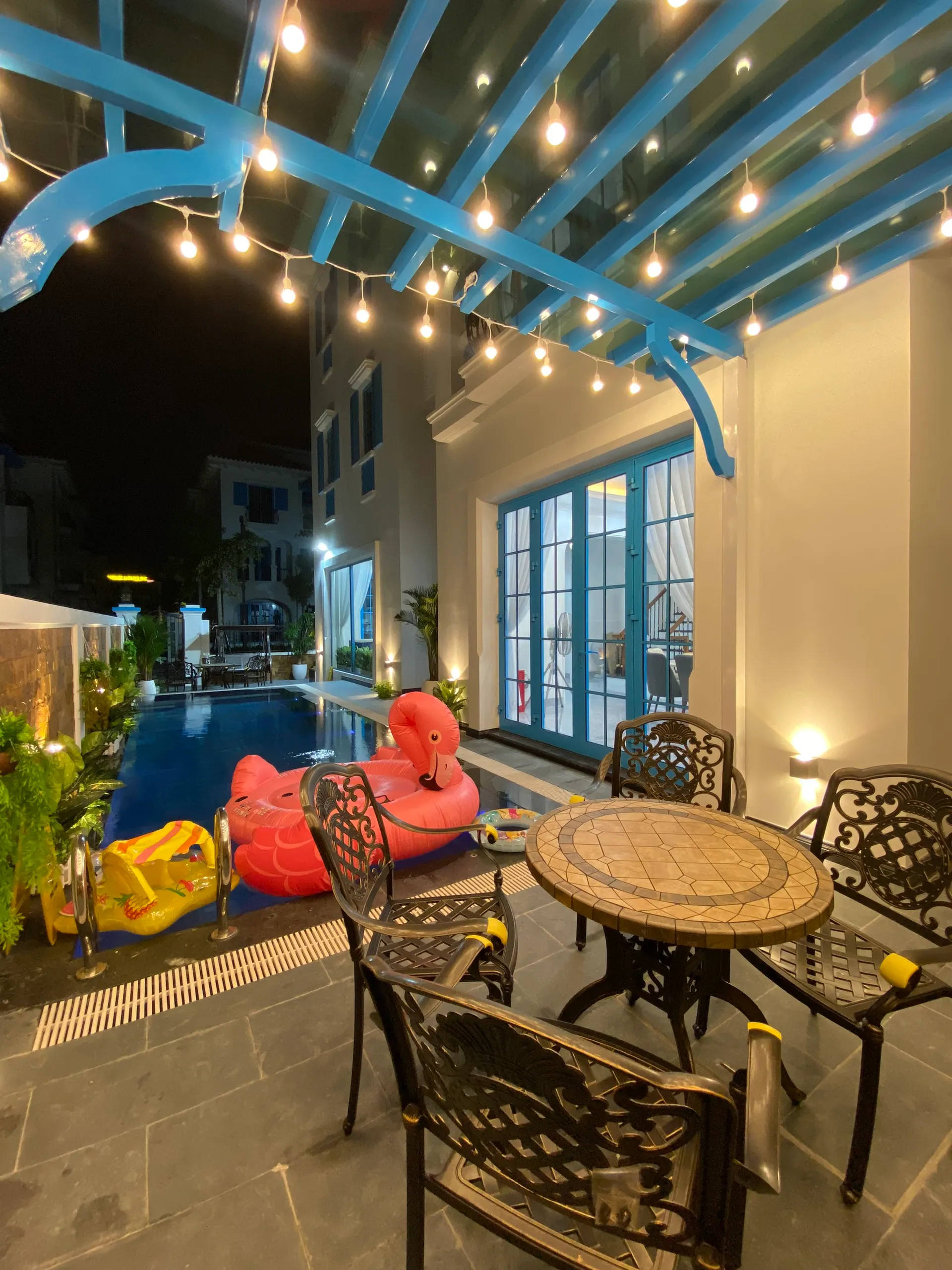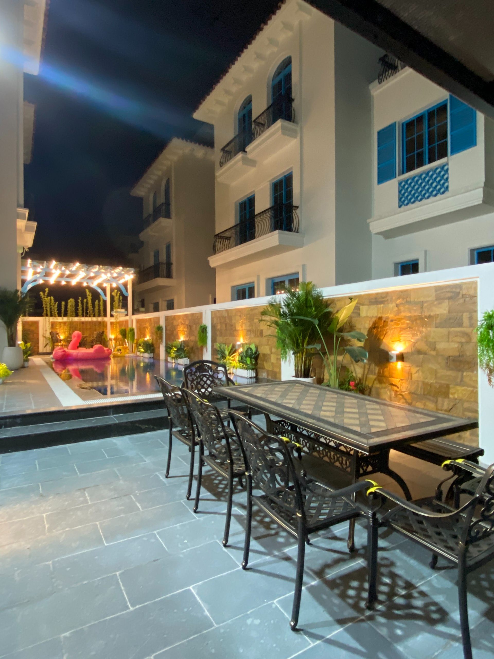 📌 01 Phòng bếp và phòng ăn đầy đủ đồ dùng, bếp nướng BBQ, bàn ghế ăn ngoài trời.