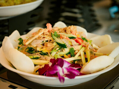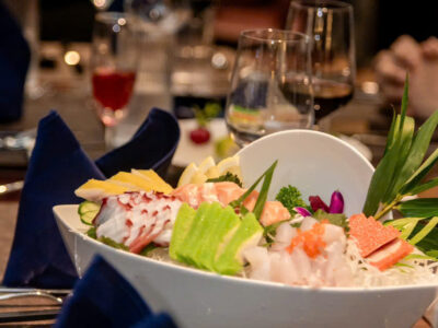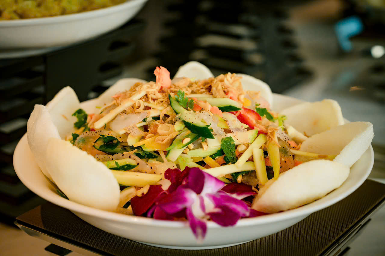 Quý khách thỏa mãn mọi giác quan trong bữa tối với thực đơn chế biến lấy cảm hứng từ tinh hoa ẩm thực Âu – Á cùng các món hải sản, đặc sản địa phương. Trong bữa ăn quý khách cùng thưởng thức những bản nhạc du dương, đằm thắm từ các nghệ sĩ violin & guitar biểu diễn