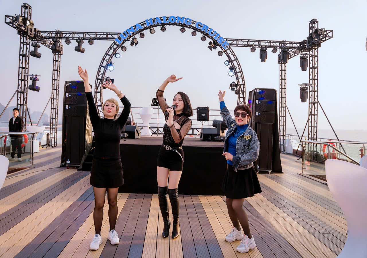 Quý khách tự do ngắm cảnh hoặc ở lại khu vực sân khấu tầng 1/tầng 2 để nghe nhạc, tham gia chương trình “Khoe giọng vàng – Vui hát vàng” hoặc hòa mình vào bữa tiệc âm nhạc sôi động do các phù thủy DJ biểu diễn tại The Echo Bar & Lounge tại tầng 3. Du thuyền cập bến tại cảng tàu Quốc tế Hạ Long, kết thúc hải trình.