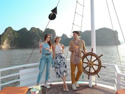 - 15h30 – 16h00: Sau khi thăm quan Quý khách quay trở lại tàu thưởng thức tiệc Sunset Party với rượu vang và hoa quả trong khi tàu quay trở lại bến